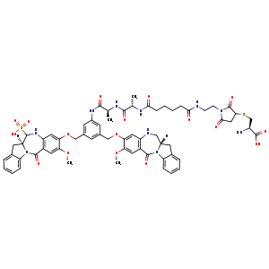 c1cccc2N3C(=O)c4cc(OC)c(OCc5cc(COc6cc7NC[C@@]8([H])N(C(c7cc6OC)=O)c9c(C8)cccc9)cc(c5)NC([C@@H](NC([C@@H](NC(CCCCC(NCCN%10C(CC(C%10=O)SC[C@@H](C(=O)O)N)=O)=O)=O)C)=O)C)=O)cc4NC([C@]3([H])Cc21)S(=O)(O)=O