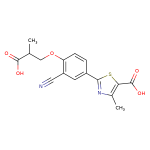 | SMILES | c1(C(O)=O)c(C)nc(-c2ccc(OCC(C(O)=O)C)c(C#N)c2)s1 |