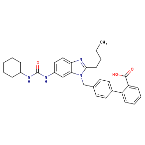 | SMILES | c1(Cn2c3c(ccc(c3)NC(NC4CCCCC4)=O)nc2CCCC)ccc(-c5c(cccc5)C(O)=O)cc1 |