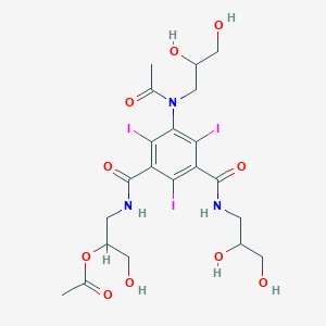 | 异名/同义词 | (+/-)-5-(ACETYL(2,3-DIHYDROXYPROPYL)AMINO)-N-(2-(ACETYLOXY)-3-HYDROXYPROPYL)-N'-(2,3-DIHYDROXYPROPYL)-2,4,6-TRIIODOBENZENE-1,3-DICARBOXAMIDE 1,3-BENZENEDICARBOXAMIDE, 5-(ACETYL(2,3-DIHYDROXYPROPYL)AMINO)-N1-(2-(ACETYLOXY)-3-HYDROXYPROPYL)-N3-(2,3-DIHYDROXYPROPYL)-2,4,6-TRIIODO- 5-(ACETYL(2,3-DIHYDROXYPROPYL)AMINO)-N-(2-(ACETYLOXY)-3-HYDROXYPROPYL)-N'-(2,3-DIHYDROXYPROPYL)-2,4,6-TRIIODOBENZENE-1,3-DICARBOXAMIDE IOHEXOL IMPURITY N [EP IMPURITY]