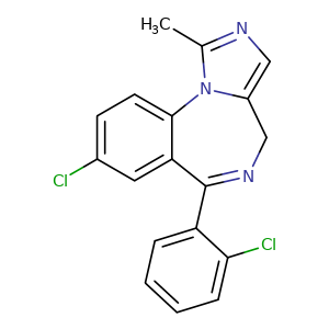 c1c2n(c(C)n1)-c3c(cc(Cl)cc3)C(=NC2)c4ccccc4Cl