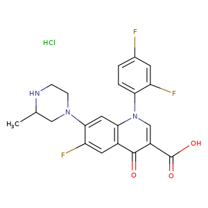 | SMILES | n1(c2c(cc(c(N3CC(C)NCC3)c2)F)c(c(c1)C(=O)O)=O)-c4c(cc(cc4)F)F.Cl |