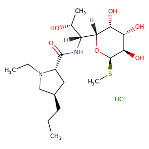 | SMILES | [C@]1(O[C@H](SC)[C@@H]([C@H]([C@H]1O)O)O)([C@](NC([C@H]2N(C[C@@H](C2)CCC)CC)=O)([C@H](O)C)[H])[H].Cl |
