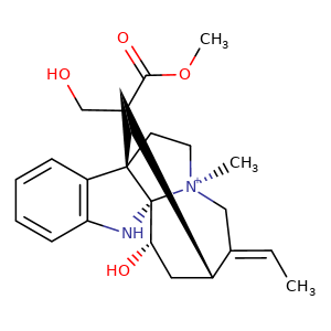 | SMILES | C(OC)(=O)[C@]1([C@]23[C@@]4([C@H](C[C@H]1/C(=C\C)/C[N@@+]4(CC2)C)O)Nc5c3cccc5)CO |