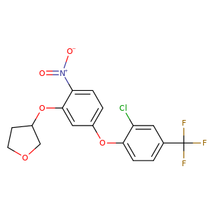 O(c1c([N+](=O)[O-])ccc(c1)Oc2c(Cl)cc(cc2)C(F)(F)F)C3CCOC3