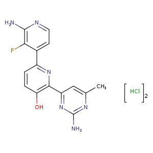 | SMILES | Oc1c(-c2cc(C)nc(n2)N)nc(cc1)-c3c(F)c(N)ncc3.Cl.Cl |