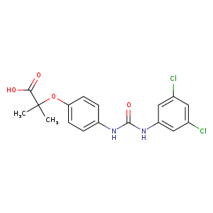 | SMILES | c1(cc(cc(c1)Cl)Cl)NC(Nc2ccc(cc2)OC(C)(C)C(O)=O)=O |