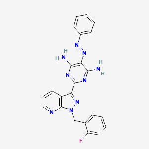 | 异名/同义词 | (E)-2-(1-(2-FLUOROBENZYL)-1H-PYRAZOLO(3,4-B)PYRIDIN-3-YL)-5-(PHENYLDIAZENYL)PYRIMIDINE-4,6-DIAMINE 2-(1-((2-FLUOROPHENYL)METHYL)-1H-PYRAZOLO(3,4-B)PYRIDIN-3-YL)-5-(2-PHENYLDIAZENYL)-4,6-PYRIMIDINEDIAMINE 2-(1-((2-FLUOROPHENYL)METHYL)-1H-PYRAZOLO(3,4-B)PYRIDIN-3-YL)-5-((1E)-2-PHENYLDIAZENYL)-4,6-PYRIMIDINEDIAMINE 4,6-PYRIMIDINEDIAMINE, 2-(1-((2-FLUOROPHENYL)METHYL)-1H-PYRAZOLO(3,4-B)PYRIDIN-3-YL)-5-(2-PHENYLDIAZENYL)- 4,6-PYRIMIDINEDIAMINE, 2-(1-((2-FLUOROPHENYL)METHYL)-1H-PYRAZOLO(3,4-B)PYRIDIN-3-YL)-5-((1E)-2-PHENYLDIAZENYL)-