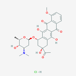 | 异名/同义词 | 5,12-NAPHTHACENEDIONE, 8-ACETYL-7,8,9,10-TETRAHYDRO-6,8,11-TRIHYDROXY-1-METHOXY-10-((2,3,6-TRIDEOXY-3-(DIMETHYLAMINO)-.ALPHA.-L-LYXO-HEXOPYRANOSYL)OXY)-, HYDROCHLORIDE (1:1), (8S,10S)- 5,12-NAPHTHACENEDIONE, 8-ACETYL-7,8,9,10-TETRAHYDRO-6,8,11-TRIHYDROXY-1-METHOXY-10-((2,3,6-TRIDEOXY-3-(DIMETHYLAMINO)-.ALPHA.-L-LYXO-HEXOPYRANOSYL)OXY)-, HYDROCHLORIDE, (8S-CIS)- N,N-DIMETHYLDAUNOMYCIN HYDROCHLORIDE N,N-DIMETHYLDAUNORUBICIN HYDROCHLORIDE NSC-258812