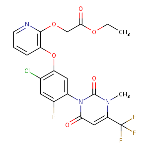 | 异名/同义词 | (3-(2-CHLORO-4-FLUORO-5-(1-METHYL-6-TRIFLUOROMETHYL-2,4-DIOXO-1,2,3,4-TETRAHYDROPYRIMIDIN-3-YL)PHENOXY)-2-PYRIDYLOXY)ACETIC ACID ETHYL ESTER 2-((3-(2-CHLORO-4-FLUORO-5-(3-METHYL-2,6-DIOXO-4-(TRIFLUOROMETHYL)-3,6-DIHYDROPYRIMIDIN-1(2H)-YL)PHENOXY)PYRIDIN-2-YL)OXY)ACETIC ACID ETHYL ESTER 3-((2-CHLORO-4-FLUORO-5-(3-METHYL-2,6-DIOXO-4-TRIFLUOROMETHYL-3,6-DIHYDRO-2H-PYRIMIDIN-1-YL)PHENOXY)PYRIDIN-2-YLOXY)ACETIC ACID ETHYL ESTER 3-(2-CHLORO-4-FLUORO-5-(3-METHYL-2,6-DIOXO-4-(TRIFLUOROMETHYL)-1,2,3,6-TETRAHYDROPYRIMIDIN-1-YL)PHENOXY)-2-((ETHOXYCARBONYL)METHOXY)PYRIDINE ACETIC ACID, 2-((3-(2-CHLORO-5-(3,6-DIHYDRO-3-METHYL-2,6-DIOXO-4-(TRIFLUOROMETHYL)-1(2H)-PYRIMIDINYL)-4-FLUOROPHENOXY)-2-PYRIDINYL)OXY)-, ETHYL ESTER EPYRIFENACIL EPYRIFENACIL [ISO] ETHYL (3-(2-CHLORO-4-FLUORO-5-(1-METHYL-6-TRIFLUOROMETHYL-2,4-DIOXO-1,2,3,4-T ETRAHYDROPYRIMIDIN-3-YL)PHENOXY)-2-PYRIDYLOXY)ACETATE ETHYL (3-(2-CHLORO-4-FLUORO-5-(1-METHYL-6-TRIFLUOROMETHYL-2,4-DIOXO-1,2,3,4-TETRAHYDROPYRIMIDIN-3-YL)PHENOXY)-2-PYRIDYLOXY)ACETATE ETHYL (3-(2-CHLORO-4-FLUORO-5-(1-METHYL-6-TRIFLUOROMETHYL-2,4-DIOXO-1,2,3,4-TETRAHYDROPYRIMIDINE-3-YL)PHENOXY)-2-PYRIDYLOXY)ACETATE ETHYL 2-((3-(2-CHLORO-4-FLUORO-5-(3-METHYL-2,6-DIOXO-4-(TRIFLUOROMETHYL)-3,6-DIHYDROPYRIMIDIN-1(2H)-YL)PHENOXY)PYRIDIN-2-YL)OXY)ACETATE S-3100 SYN-523