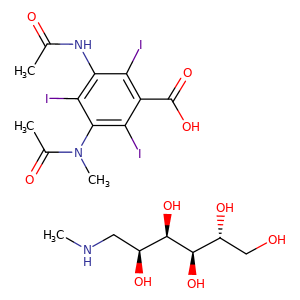 | SMILES | c1(c(c(c(I)c(c1I)C(O)=O)NC(=O)C)I)N(C)C(C)=O.[C@H]([C@@H]([C@@H](O)CNC)O)([C@H](O)CO)O |