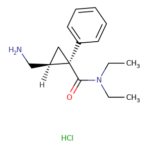 | SMILES | [C@]1([C@@H](CN)C1)(C(N(CC)CC)=O)c2ccccc2.Cl |