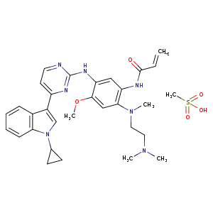 | SMILES | c1cc2c(cc1)n(cc2-c3ccnc(n3)Nc4cc(c(cc4OC)N(CCN(C)C)C)NC(C=C)=O)C5CC5.S(=O)(=O)(C)O |