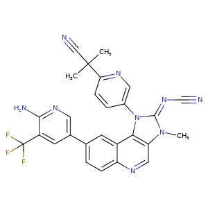 | SMILES | c1(ccc2c(c1)c3c(cn2)n(/c(/n3-c4cnc(cc4)C(C)(C)C#N)=N\C#N)C)-c5cnc(c(c5)C(F)(F)F)N |