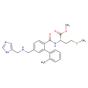 | 异名/同义词 | (S)-METHYL 2-(5-((((1H-IMIDAZOL-5-YL)METHYL)AMINO)METHYL)-2'-METHYL-(1,1'-BIPHENYL)-2-YLCARBOXAMIDO)-4-(METHYLTHIO)BUTANOATE FTI-2153 FTI2153 L-METHIONINE, N-((5-(((1H-IMIDAZOL-4-YLMETHYL)AMINO)METHYL)-2'-METHYL(1,1'-BIPHENYL)-2-YL)CARBONYL)-, METHYL ESTER L-METHIONINE, N-((5-(((1H-IMIDAZOL-5-YLMETHYL)AMINO)METHYL)-2'-METHYL(1,1'-BIPHENYL)-2-YL)CARBONYL)-, METHYL ESTER