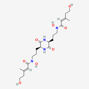 | 异名/同义词 | DIMERUMIC ACID DIMERUNIC ACID (2E,2'E)-N,N'-(((2S,5S)-3,6-DIOXO-2,5-PIPERAZINEDIYL)DI-3,1-PROPANEDIYL)BIS(N,5-DIHYDROXY-3-METHYL-2-PENTENAMIDE) 2-PENTENAMIDE, N,N'-(((2S,5S)-3,6-DIOXO-2,5-PIPERAZINEDIYL)DI-3,1-PROPANEDIYL)BIS(N,5-DIHYDROXY-3-METHYL-, (2E,2'E)- DIMERUM ACID