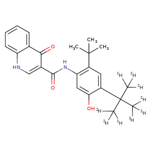 | 异名/同义词 | 3-QUINOLINECARBOXAMIDE, N-(2-(1,1-DIMETHYLETHYL)-4-(1,1-DI(METHYL-D3)ETHYL- 2,2,2-D3)-5-HYDROXYPHENYL)-1,4-DIHYDRO-4-OXO- CTP-656 D9-IVACAFTOR DEUTERATED IVACAFTOR DEUTIVACAFTOR DEUTIVACAFTOR [USAN] DEUTIVACAFTOR [WHO-DD] IVACAFTOR D9 N-(2-TERT-BUTYL-5-HYDROXY-4-(2-(2H3)METHYL(1,1,1,3,3,3-2H6)PROPAN-2-YL)PHENYL)-4-OXO-1,4-DIHYDROQUINOLINE-3-CARBOXAMIDE VX-561 DEUTIVACAFTOR [INN]