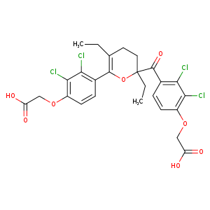 | 异名/同义词 | 2-(4-(2-(4-(CARBOXYMETHOXY)-2,3-DICHLOROBENZOYL)-2,5-DIETHYL-3,4-DIHYDRO-2H-PYRAN-6-YL)-2,3-DICHLOROPHENOXY)ACETIC ACID ACETIC ACID, (4-(2-(4-(CARBOXYMETHOXY)-2,3-DICHLOROBENZOYL)-3,4-DIHYDRO-2,5-DIETHYL-2H-PYRAN-6-YL)-2,3-DICHLOROPHENOXY)- ETACRYNIC ACID IMPURITY C [EP IMPURITY] ETHACRYNIC ACID DIMER