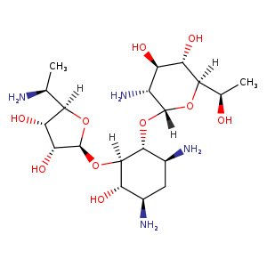 | 异名/同义词 | 4-O-(2-AMINO-2,7-DIDEOXY-D-GLYCERO-.ALPHA.-D-GLUCOHEPTOPYRANOSYL)-5-O-(5-AMINO-5,6-DIDEOXY-.ALPHA.-L-TALOFURANOSYL)-2-DEOXY-D-STREPTAMINE D-STREPTAMINE, O-2-AMINO-2,7-DIDEOXY-D-GLYCERO-.ALPHA.-D-GLUCO-HEPTOPYRANOSYL-(1->4)-O-(5-AMINO-5,6-DIDEOXY-.ALPHA.-L-TALOFURANOSYL-(1->5))-2-DEOXY- ELX-02 EXALUREN NB-124 EXALUREN [INN]