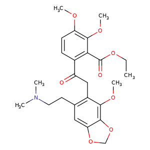 | SMILES | C(c1c(CCN(C)C)cc2OCOc2c1OC)C(c3ccc(OC)c(OC)c3C(=O)OCC)=O |