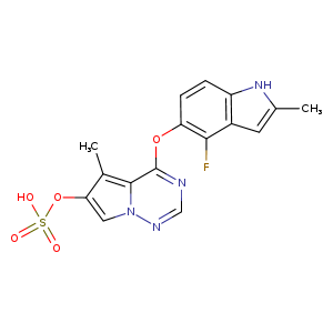 | SMILES | n1cnc(Oc2ccc3c(c2F)cc([nH]3)C)c4n1cc(c4C)OS(=O)(=O)O |