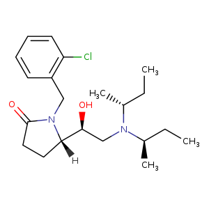 | 异名/同义词 | (1S)-2-((1R,1'R)-BIS(1-METHYLPROPYL)AMINO)-1-((5S)-1-((2-CHLOROPHENYL)METHYL)-2-OXO-5-PYRROLIDINYL)ETHANOL (5S)-5-((1S)-2-(BIS((2R)-BUTAN-2-YL)AMINO)-1-HYDROXYETHYL)-1-((2-CHLOROPHENYL)METHYL)PYRROLIDIN-2-ONE 2-PYRROLIDINONE, 5-(2-(BIS(1-METHYLPROPYL)AMINO)-1-HYDROXYETHYL)-1-((2-CHLOROPHENYL)METHYL)-, (5S-(5R*(R*((S*),(S*)))))- Z-4349 Z4349