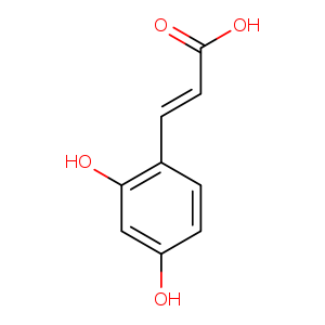 | 异名/同义词 | (E)-3-(2,4-DIHYDROXYPHENYL)ACRYLIC ACID 2,4-DIHYDROXYCINNAMIC ACID 2-PROPENOIC ACID, 3-(2,4-DIHYDROXYPHENYL)- 2-PROPENOIC ACID, 3-(2,4-DIHYDROXYPHENYL)-, (2E)- 3-(2,4-DIHYDROXYPHENYL)-2-PROPENOIC ACID 3-(2,4-DIHYDROXYPHENYL)ACRYLIC ACID TRANS-2,4-DIHYDROXYCINNAMIC ACID UMBELLIC ACID