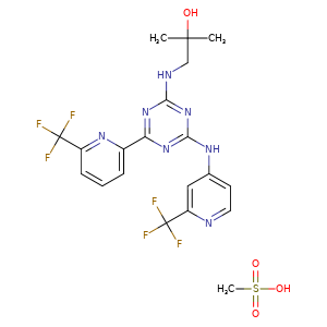| SMILES | N(c1nc(nc(n1)-c2nc(C(F)(F)F)ccc2)NCC(C)(C)O)c3ccnc(C(F)(F)F)c3.S(O)(=O)(=O)C |