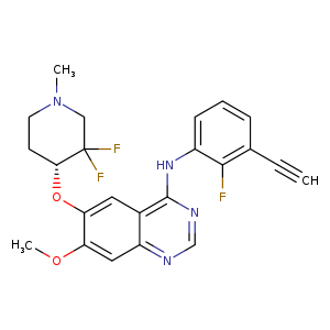 n1cnc(c2cc(c(cc12)OC)O[C@H]3C(CN(CC3)C)(F)F)Nc4c(c(ccc4)C#C)F