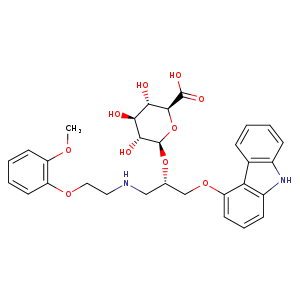 | SMILES | O([C@H]1[C@H](O)[C@@H](O)[C@@H]([C@H](O1)C(O)=O)O)[C@@H](CNCCOc2c(OC)cccc2)COc3cccc4c3c5c(cccc5)[nH]4 |