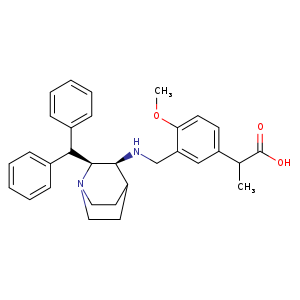 | SMILES | [C@H]1([C@H](C(c2ccccc2)c3ccccc3)N4CCC1CC4)NCc5c(ccc(C(C)C(=O)O)c5)OC |