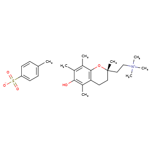 | 异名/同义词 | 2H-1-BENZOPYRAN-2-ETHANAMINIUM, 3,4-DIHYDRO-6-HYDROXY-N,N,N,2,5,7,8-HEPTAMETHYL-, (2S)-, SALT WITH 4-METHYLBENZENESULFONIC ACID (1:1) 2H-1-BENZOPYRAN-2-ETHANAMINIUM, 3,4-DIHYDRO-6-HYDROXY-N,N,N,2,5,7,8-HEPTAMETHYL-, (S)-, SALT WITH 4-METHYLBENZENESULFONIC ACID (1:1) 3,4-DIHYDRO-6-HYDROXY-N,N,N,2,5,7,8-HEPTAMETHYL-2H-1-BENZOPYRAN-2-ETHANAMINIUM 4-METHYLBESYLATE,D- MDL-74405