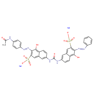 | 异名/同义词 | 2-NAPHTHALENESULFONIC ACID, 3-((4-(ACETYLAMINO)PHENYL)AZO)-4-HYDROXY-7-((((5-HYDROXY-6-(PHENYLAZO)-7-SULFO-2-NAPHTHALENYL)AMINO)CARBONYL)AMINO)-, DISODIUM SALT 2-NAPHTHALENESULFONIC ACID, 3-(2-(4-(ACETYLAMINO)PHENYL)DIAZENYL)-4-HYDROXY-7-((((5-HYDROXY-6-(2-PHENYLDIAZENYL)-7-SULFO-2-NAPHTHALENYL)AMINO)CARBONYL)AMINO)-, SODIUM SALT (1:2) 3-((4-(ACETYLAMINO)PHENYL)AZO)-4-HYDROXY-7-((((5-HYDROXY-6-(PHENYLAZO)-7-SULFO-2-NAPHTHALENYL)AMINO)CARBONYL)AMINO)-2-NAPHTHALENESULFONIC ACID, DISODIUM SALT BENZO FAST SCARLET 4BS BENZO FAST SCARLET 4BSA-CF C.I. DIRECT RED 23 C.I. DIRECT RED 23, DISODIUM SALT CHLORAZOL FAST SCARLET 4B CI 29160 DIRECT RED 23 FAST SCARLET 4BSA NSC-47762