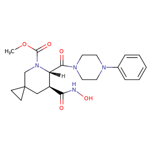 | 异名/同义词 | 5-AZASPIRO(2.5)OCTANE-5-CARBOXYLIC ACID, 7-((HYDROXYAMINO)CARBONYL)-6-((4-PHENYL-1-PIPERAZINYL)CARBONYL)-, METHYL ESTER, (6S,7S)- ADERBASIB ADERBASIB [USAN] ADERBASIB [WHO-DD] INCB-007839 INCB007839 METHYL (6S,7S)-7-((HYDROXYAMINO)CARBONYL)-6-((4-PHENYLPIPERAZIN-1-YL)CARBONYL)-5-AZASPIRO(2.5)OCTANE-5-CARBOXYLATE ADERBASIB [INN]