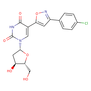 | 异名/同义词 | 5-(3-(4-CHLORO-PHENYL)-ISOXAZOL-5-YL)-1-((2R,4S,5R)-4-HYDROXY-5-HYDROXYMETHYL-TETRAHYDRO-FURAN-2-YL)-1H-PYRIMIDINE-2,4-DIONE 5-(3-(4-CHLOROPHENYL)-1,2-OXAZOL-5-YL)-1-((2R,4S,5R)-4-HYDROXY-5-(HYDROXYMETHYL)OXOLAN-2-YL)-1,2,3,4-TETRAHYDROPYRIMIDINE-2,4-DIONE URIDINE, 5-(3-(4-CHLOROPHENYL)-5-ISOXAZOLYL)-2'-DEOXY-