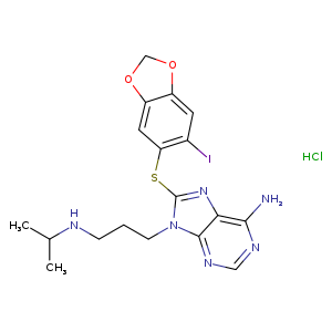 | SMILES | Ic1c(Sc2n(CCCNC(C)C)c3c(n2)c(N)ncn3)cc4c(c1)OCO4.Cl |