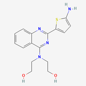 | 异名/同义词 | 2-((2-(5-AMINOTHIOPHEN-2-YL)QUINAZOLIN-4-YL)-(2-HYDROXYETHYL)AMINO)ETHANOL AMINO-2-THIENYL)-4-QUINAZOLINYL)IMINO)BISETHANOL, 2,2'-((2-(5- ETHANOL, 2,2'-((2-(5-AMINO-2-THIENYL)-4-QUINAZOLINYL)IMINO)BIS-