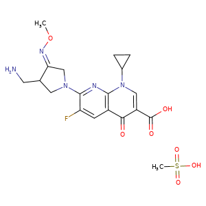 | SMILES | c12c(c(=O)c(cn1C3CC3)C(=O)O)cc(F)c(N4C\C(=N/OC)\C(CN)C4)n2.S(=O)(=O)(O)C |