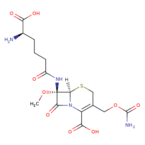 | SMILES | N12C(=C(CS[C@@]2([C@](C1=O)(OC)NC(CCC[C@H](C(=O)O)N)=O)[H])COC(=O)N)C(=O)O |