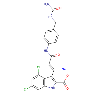| 异名/同义词 | 1H-INDOLE-2-CARBOXYLIC ACID, 3-((1E)-3-((4-(((AMINOCARBONYL)AMINO)METHYL)PHENYL)AMINO)-3-OXO-1-PROPENYL)-4,6-DICHLORO-, MONOSODIUM SALT 1H-INDOLE-2-CARBOXYLIC ACID, 3-(3-((4-(((AMINOCARBONYL)AMINO)METHYL)PHENYL)AMINO)-3-OXO-1-PROPENYL)-4,6-DICHLORO-, MONOSODIUM SALT, (E)- GV-228869