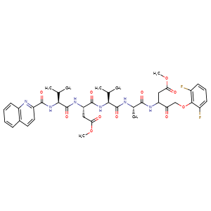 | 异名/同义词 | 5-(2,6-DIFLUORO-PHENOXY)-3(R,S)-(2(S)-(2(S)-(3-METHOXYCARBONYL-2(S)-(3-METHYL-2(S)-((QUINOLINE-2-CARBONYL)-AMINO)-BUTYRYLAMINO)-PROPIONYLAMINO)-3-METHYL-BUTYRYLAMINO)-PROPIONYLAMINO)-4-OXO-PENTANOIC ACID METHYL ESTER L-ALANINAMIDE, N-(2-QUINOLINYLCARBONYL)-L-VALYL-L-.ALPHA.-ASPARTYL-L-VALYL-N-(3-(2,6-DIFLUOROPHENOXY)-1-(2-METHOXY-2-OXOETHYL)-2-OXOPROPYL)-, METHYL ESTER METHYL-(3S)-5-(2,6-DIFLUOROPHENOXY)-3-((((4-METHOXY-4-OXO-BUTANOYL)-(3-METHYLBUTANOYL-(QUINOLINE-2-CARBONYLAMINO)AMINO)AMINO)-(3-METHYLBUTANOYL)AMINO)-PROPANOYL-AMINO)-4-OXO-PENTANOATE TRP-601