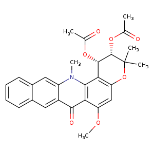 7H-BENZO(B)PYRANO(3,2-H)ACRIDIN-7-ONE, 1,2-BIS(ACETYLOXY)-1,2,3,14-TETRAHYDRO-6-METHOXY-3,3,14-TRIMETHYL-, (1R,2R)-REL-
