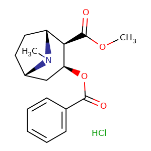 | SMILES | [C@@H]12[C@H]([C@H](C[C@@H](N1C)CC2)OC(=O)c3ccccc3)C(=O)OC.Cl |