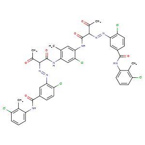 | SMILES | c1(c(cc(c(c1)C)NC(C(C(=O)C)\N=N\c2cc(C(=O)Nc3c(c(ccc3)Cl)C)ccc2Cl)=O)Cl)NC(C(C(=O)C)\N=N\c4cc(C(=O)Nc5c(c(ccc5)Cl)C)ccc4Cl)=O |