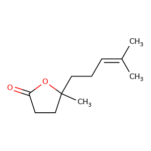 | 异名/同义词 | (+/-)-4,8-DIMETHYLNON-7-EN-4-OLIDE 2(3H)-FURANONE, DIHYDRO-5-METHYL-5-(4-METHYL-3-PENTEN-1-YL)- 2(3H)-FURANONE, DIHYDRO-5-METHYL-5-(4-METHYL-3-PENTENYL)- 4-HYDROXY-4,8-DIMETHYL-7-NONENOIC ACID .GAMMA.-LACTONE 5-METHYL-5-(4-METHYL-3-PENTENYL)-4,5-DIHYDRO-2(3H)-FURANONE FEMA NO. 4449 ORIN LACTONE