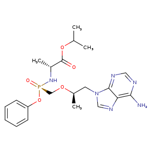 | SMILES | C(=O)(OC(C)C)[C@@H](C)N[P@@](=O)(Oc1ccccc1)CO[C@H](C)Cn2cnc3c2ncnc3N |
