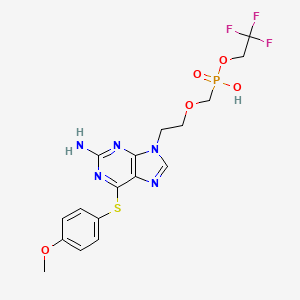 | 异名/同义词 | 2,2,2-TRIFLUOROETHYL HYDROGEN P-((2-(2-AMINO-6-((4-METHOXYPHENYL)THIO)-9H-PURIN-9-YL)ETHOXY)METHYL)PHOSPHONATE ALAMIFOVIR METABOLITE 602074 PHOSPHONIC ACID, P-((2-(2-AMINO-6-((4-METHOXYPHENYL)THIO)-9H-PURIN-9-YL)ETHOXY)METHYL)-, MONO(2,2,2-TRIFLUOROETHYL) ESTER PHOSPHONIC ACID, ((2-(2-AMINO-6-((4-METHOXYPHENYL)THIO)-9H-PURIN-9-YL)ETHOXY)METHYL)-, MONO(2,2,2-TRIFLUOROETHYL) ESTER