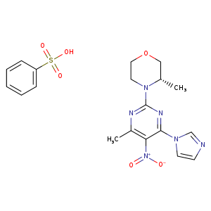 | SMILES | C[C@@H]1N(CCOC1)c2nc(c(c(n2)C)[N+]([O-])=O)-n3cncc3.c1ccccc1S(=O)(=O)O |