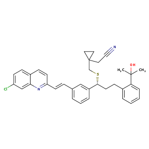 | SMILES | c1c(cc2c(c1)ccc(n2)/C=C/c3cccc(c3)[C@@H](CCc4ccccc4C(C)(C)O)SCC5(CC5)CC#N)Cl |