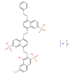 | 异名/同义词 | 2-NAPHTHALENESULFONIC ACID, 6-AMINO-4-HYDROXY-3-((4-((4-(PHENYLAZO)-7-SULFO-1-NAPHTHYL)AZO)-7-SULFO-1-NAPHTHYL)AZO)-, TRISODIUM SALT 2-NAPHTHALENESULFONIC ACID, 8-((7-AMINO-1-HYDROXY-3-SULFO-2-NAPHTHALENYL)AZO)-5-((4-(PHENYLAZO)-7-SULFO-1-NAPHTHALENYL)AZO)-, TRISODIUM 2-NAPHTHALENESULFONIC ACID, 8-((7-AMINO-1-HYDROXY-3-SULFO-2-NAPHTHALENYL)AZO)-5-((4-(PHENYLAZO)-7-SULFO-1-NAPHTHALENYL)AZO)-, TRISODIUM SALT 2-NAPHTHALENESULFONIC ACID, 8-(2-(7-AMINO-1-HYDROXY-3-SULFO-2-NAPHTHALENYL)DIAZENYL)-5-(2-(4-(2-PHENYLDIAZENYL)-7-SULFO-1-NAPHTHALENYL)DIAZENYL)-, SODIUM SALT (1:3) TRISODIUM 8-((7-AMINO-1-HYDROXY-3-SULFO-2-NAPHTHALENYL)AZO)-5-((4-(PHENYLAZO)-7-SULFO-1-NAPHTHALENYL)AZO)-2-NAPHTHALENESULFONATE |